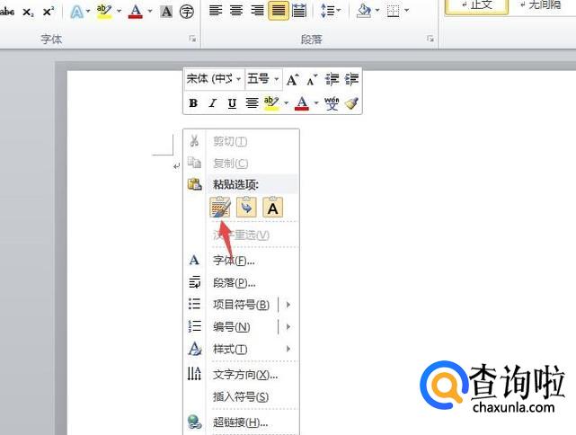 之后回到word文档,然后右击选择粘贴;
