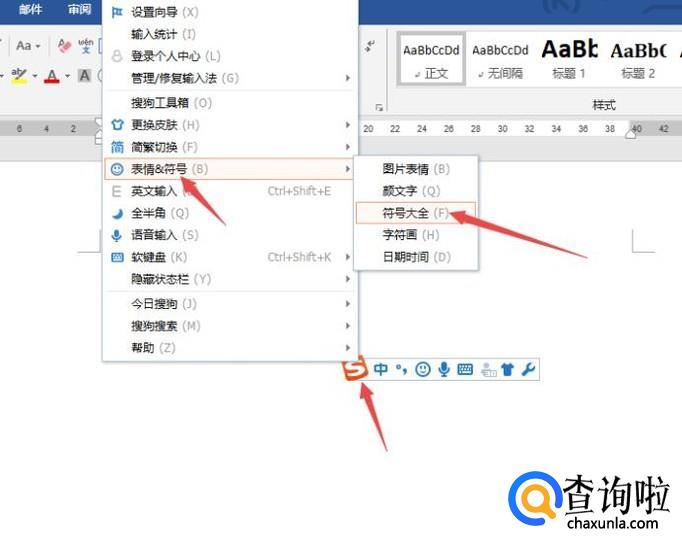 还可以右击搜狗输入法前面的S图标,然后点击表情&符号,之后点击符号大全;