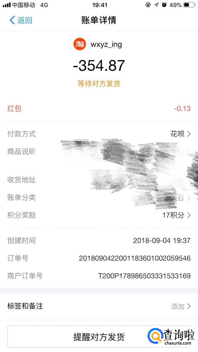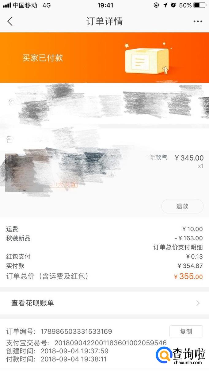 从支付宝账单中查看付款情况,确实是从花呗支付成功哦。