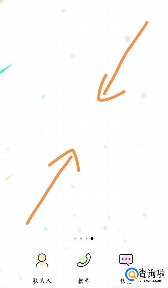首先在桌面上用两只手指,按照箭头方向同时滑动屏幕,打开桌面工具栏