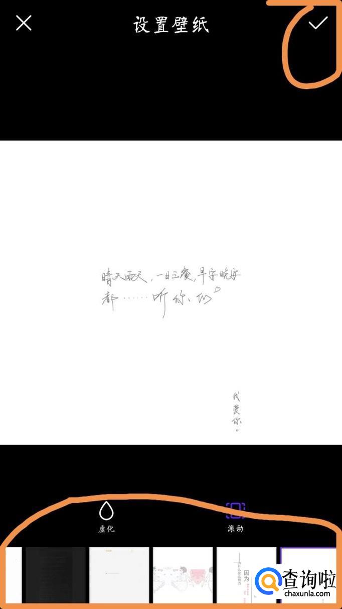 在壁纸下方可以选择自己想要的壁纸,选择好之后点击右上角的勾,确定壁纸