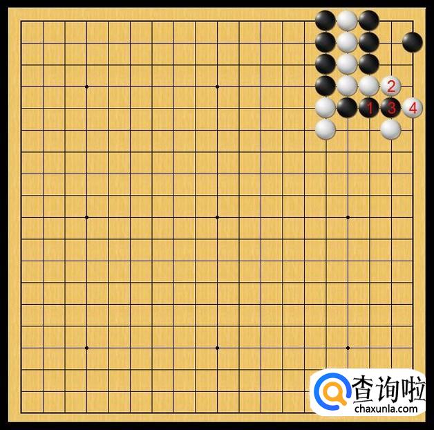 白棋于白4处挡,白4的挡防止黑棋冲断,并且,开始渡过黑棋包围圈里的白棋。如图所示。