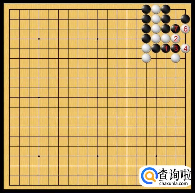 这个时候,黑棋又在黑7处打吃被包围的白棋,白棋这下傻了眼,原来黑棋通过黑5这个手筋,让白棋在粘上渡过的过程中形成了接不归。这样,被包围的白棋就无法渡过,活生生的被黑棋消灭。