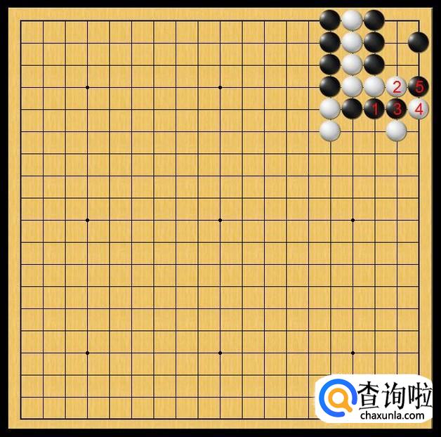 黑棋于黑5处落子打吃包围圈里的白棋,黑5落子的位置正是白棋渡过时形成的虎口。如图所示。