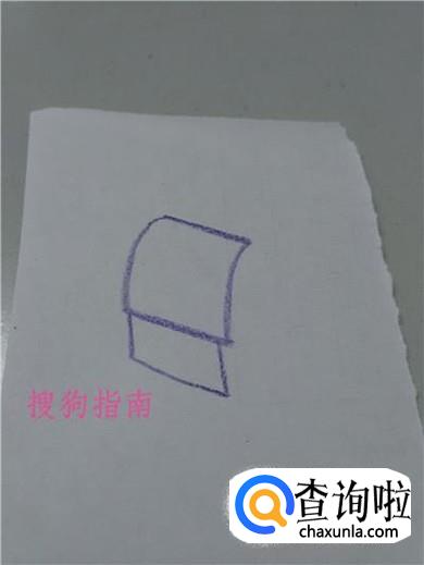 先用笔在纸上画两条直线和两条弧线,表示书包盖子。