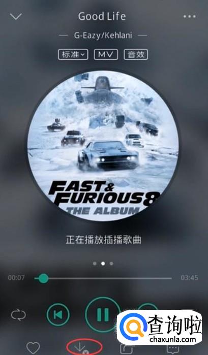 现在,将所需下载歌缓存完(可以通过拉动进度条,使歌缓存完),如图