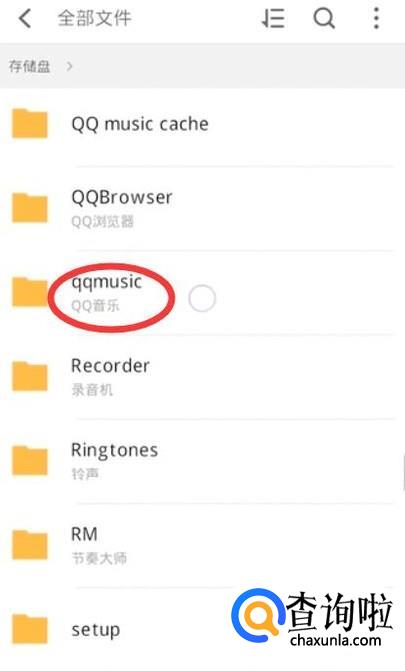 退出QQ音乐,进入文件管理,找到qqmusic文件夹,如图