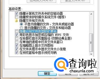 最后取消勾选隐藏已知文件类型的扩展名并点击确定就可以了,如下图所示。