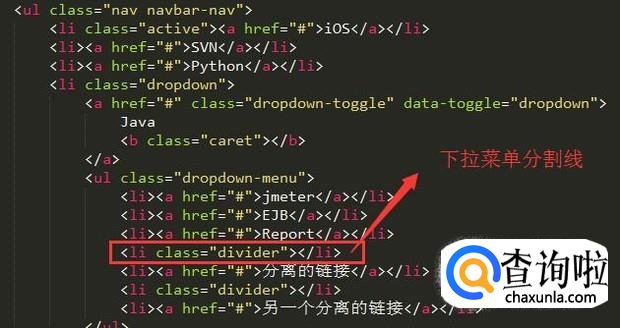 另外,值得一提的下拉导航条中可以加分割线,如下图所示,运用divider样式即可