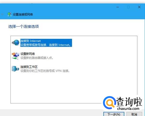 在出现的界面右边有个“设置新的连接或网络”,点一下,在接下来的界面点“连接到internet”,再点“下一步”。