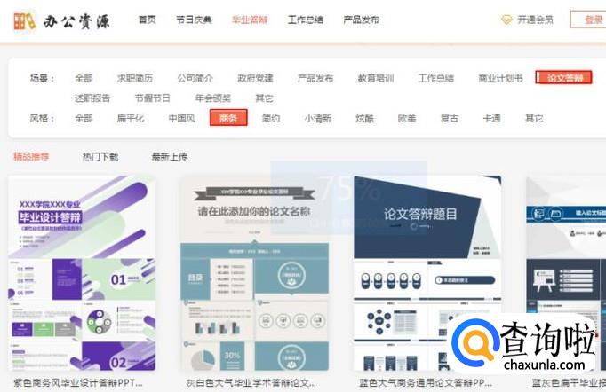 如果你是要制作一份关于毕业答辩大ppt,那么我们进入网站之后,在场景分类下,选择论文答辩,然后在风格分类下,选择想要的风格,就会出现对应的模板了。