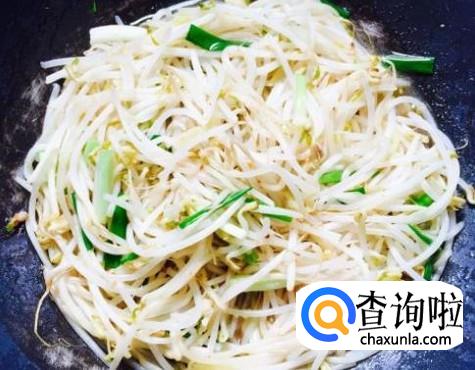 然后绿豆芽下锅,加适量的盐大火翻炒2分钟左右。【绿豆芽不要炒得太熟,太熟就不脆口】