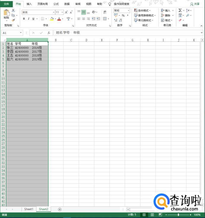 选中我们需要把单元格内容拆分的列,选中的数据单元格会变成灰色,如下图