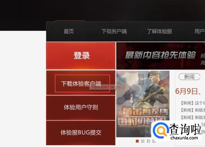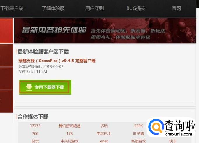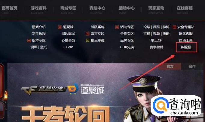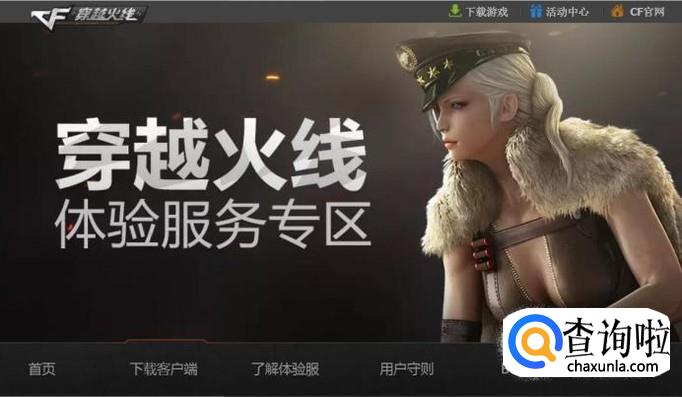 进入穿越火线游戏官网页面之后,点击页面顶部“体验服”链接,进入体验服下载页面。
