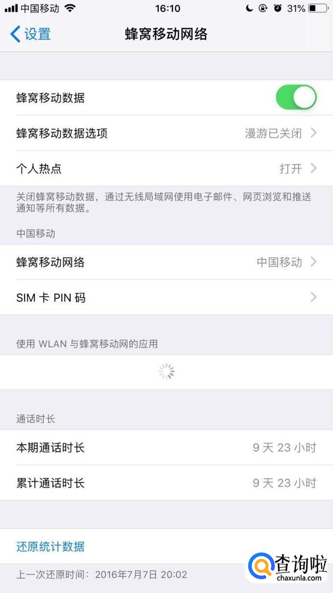 接着点击开启蜂窝移动数据开关并点击蜂窝移动数据选项,如下图所示。