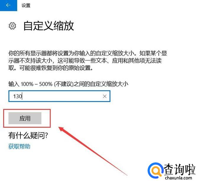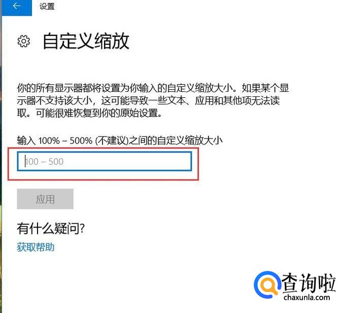接下来,在打开的页面方框中输入文本缩放大小,可以在100~500之间选择输入,数字越大,则文字显示越大。