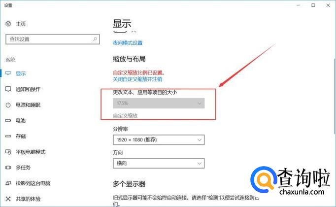 接下来,在打开的显示设置页面中,点击“自定义缩放”按钮。