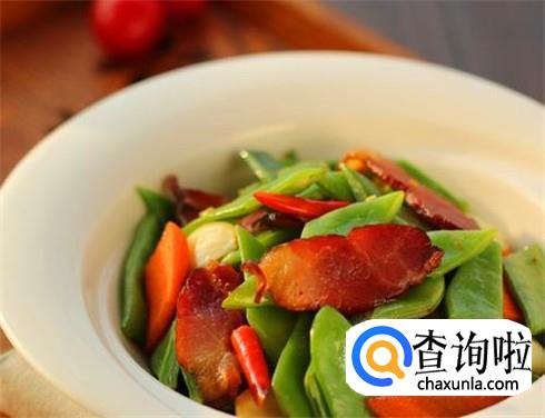 刀豆放进去和肉一同翻炒,喜欢吃辣的朋友放一些红辣椒进去,翻炒过程中可以适当加一点点水防止糊锅,炒好之后用食盐和一点味素调味出锅。