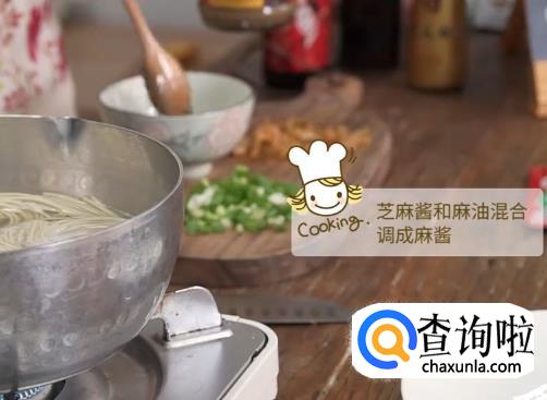 将芝麻酱和麻油混合成麻酱,不断调和均匀。