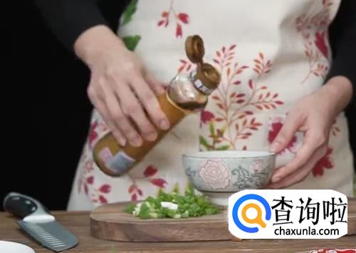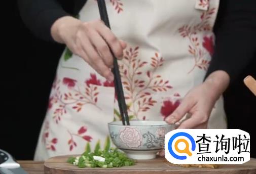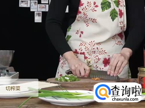 将葱洗净,然后挤出榨菜,切葱和榨菜待用。