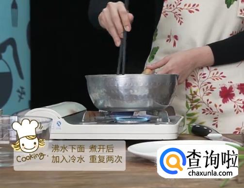 水煮开后下面,煮开后加入冷水,重复煮开两次。