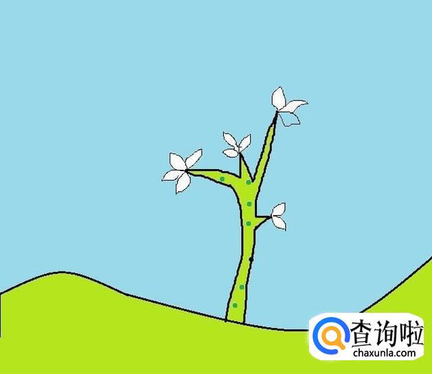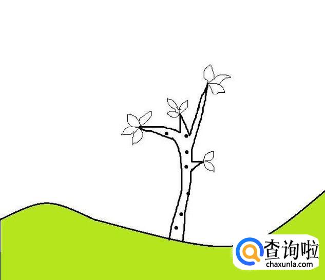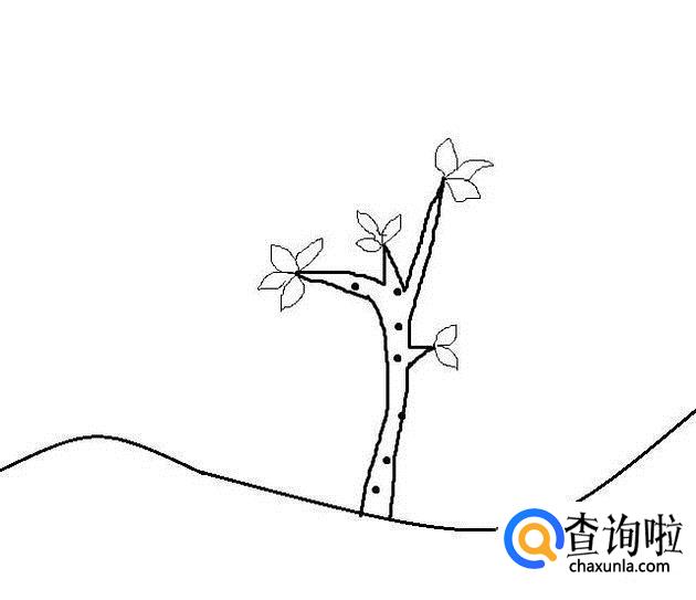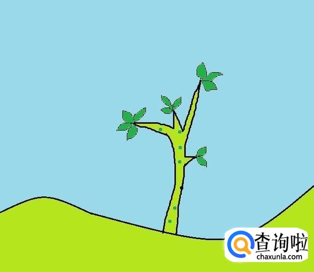 之后我们在小树苗分支上画出一些叶子,画的好看一点即可,线条一定要圆滑,如图所示。