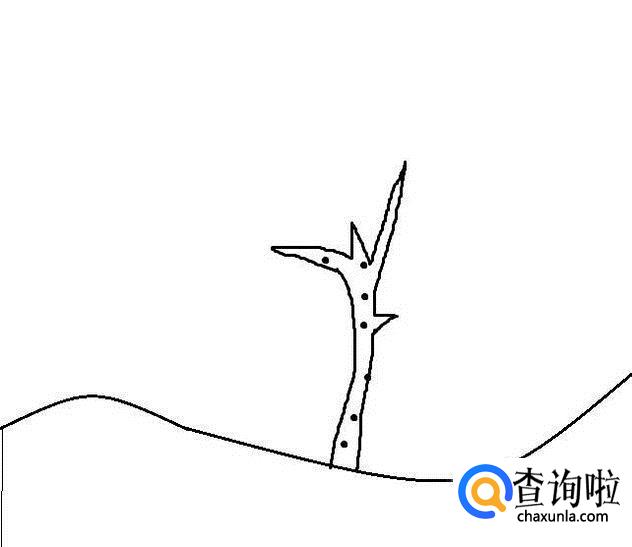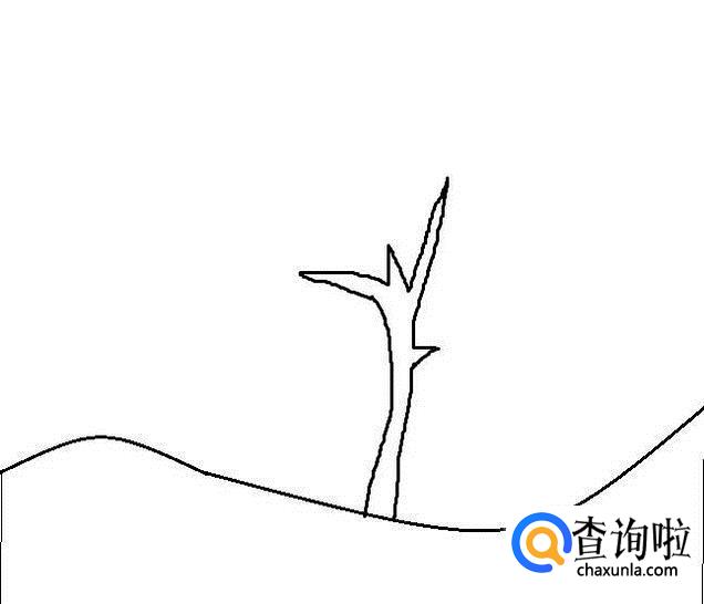 之后我们画出树干部分,因为小树苗比较小,但是树也不会太低,我们用画出细小的树干部分,分支出个小头,不要画的太多即可,如图所示。