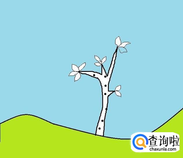 之后我们在树干上点上一些点点,是树干上的斑点,如图所示。