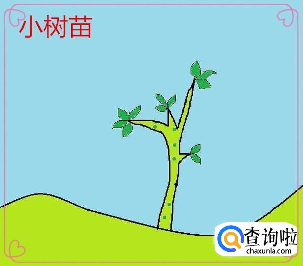 之后我们将叶子涂抹上深绿色,产生对比感,这样比较漂亮,如图所示。这样小树苗就画好了。