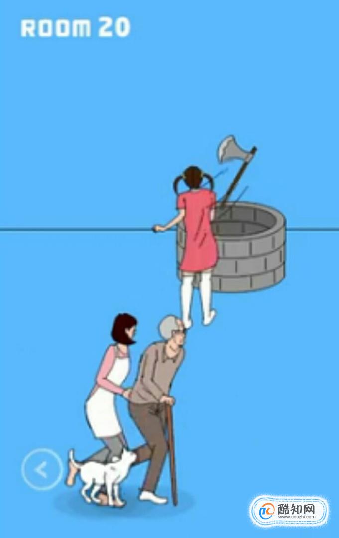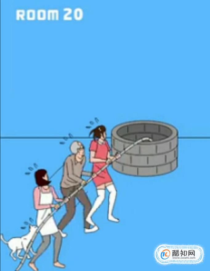 箱子劈开以后有一根绳子,将绳子一端扔到井口,女生和妈妈、爷爷、猫咪一起拽动绳子救出男生,游戏结束
