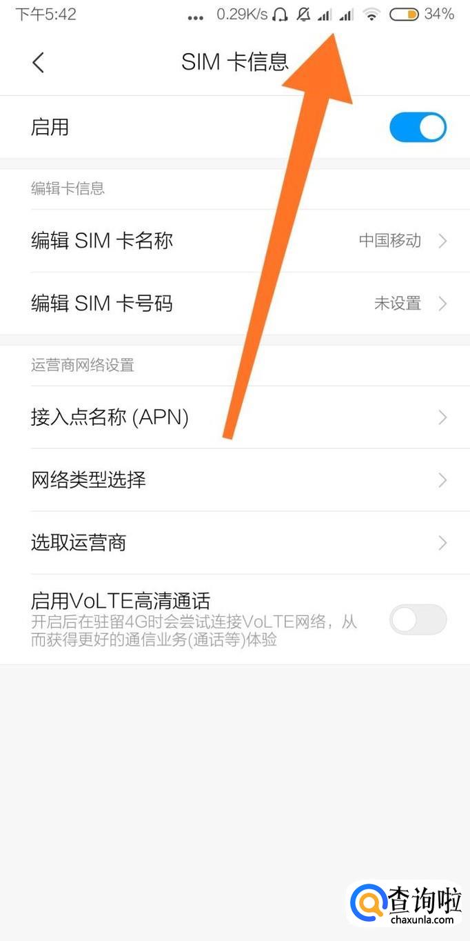 再点击进入出现HD字样的手机卡营运商的“SIM卡信息”。