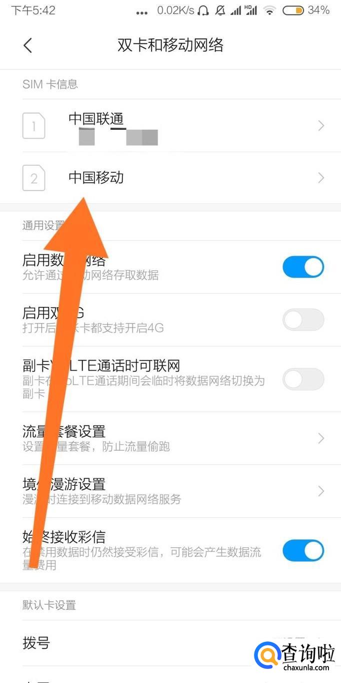 然后找到“双卡和移动网络”设置选项,点击进入。