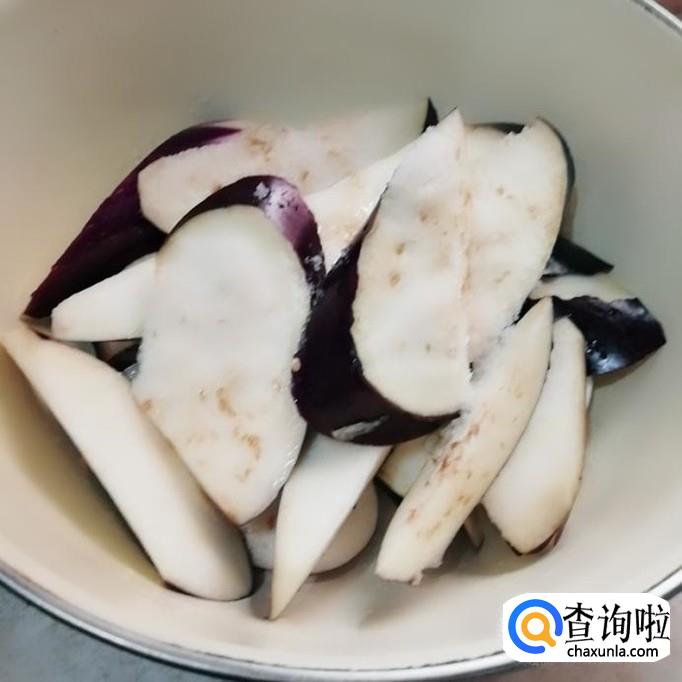 再来把茄子切成块放盐腌五分钟再洗干净控水备用。