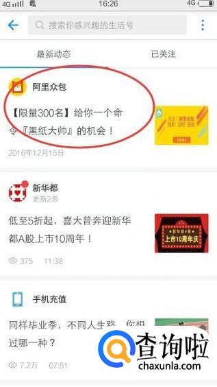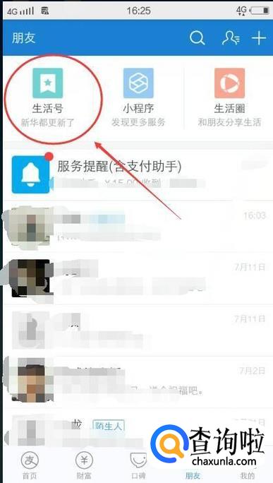 然后点击上方的【生活号】,如下图所示: