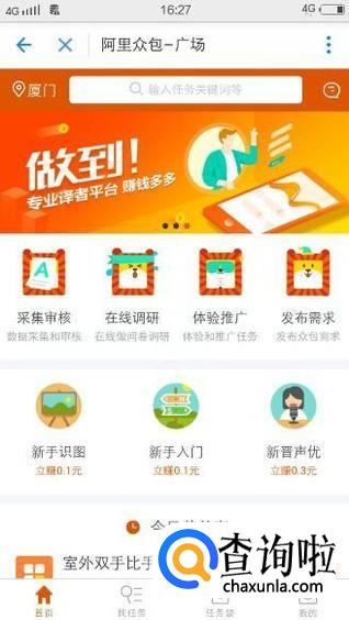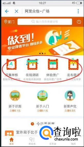 在最新更新下方有一个【阿里众包】,点击它,如下图所示: