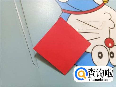 然后,我们再找到一张正方形的折纸,最好是用红色的。沿着它的任意一条中轴线对折过后展开,再沿着另外一条中轴线对折。
