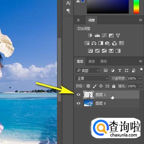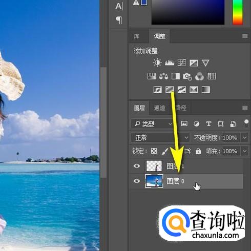 按CTRL+J,把人物拷贝到新图层中。再选中底下的相片层。