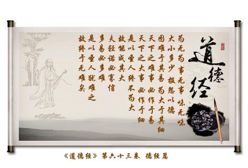 以无为的态度而有所作为,以不滋生事端的方式去处理事务,在平淡无味中去体味社会氛围。以处理大事的态度来处理小事,以对待多数的态度来对待少数。用德政去化解民怨。