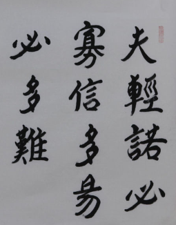 在“轻诺必寡信,多易必多难”中,老子提出了衡量是非标准的一个标准,在不涉及具体情节时,老子认为被轻易许诺的信用一定不充足,把事情描绘得过分容易,实际实施中,必然会困难重重。