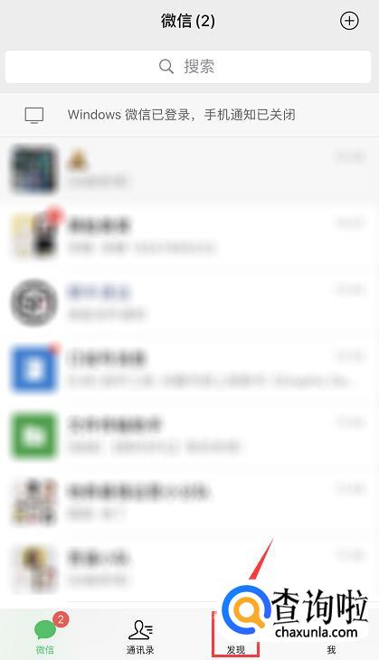 进入微信之后,在下方的导航栏中点击【发现】。