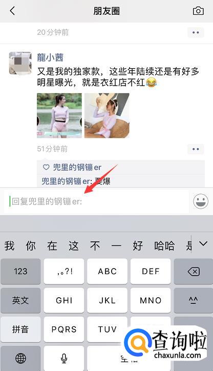 在朋友圈列表页中,如果你是共同好友,就可以看到好友的评论,想要回复哪位好友就直接点击该好友的评论内容。