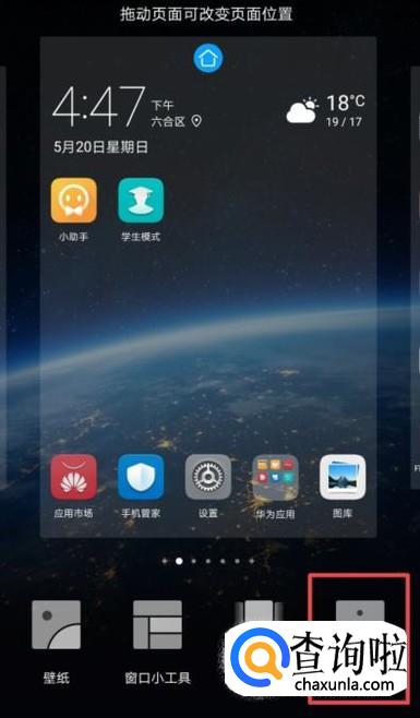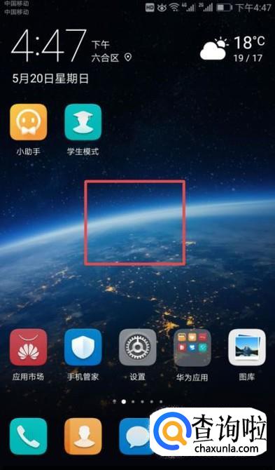 现在安卓手机的品牌是有很多的,此处我们用华为的手机进行演示一下,我们首先打开我们的手机,然后长按手机桌面的空白处;