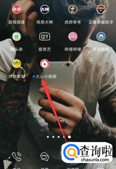 打开手机,找到火山小视频,点击并进入,如图所示。