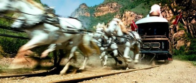 以《让子弹飞》 “白马拉火车”这个镜头为例: