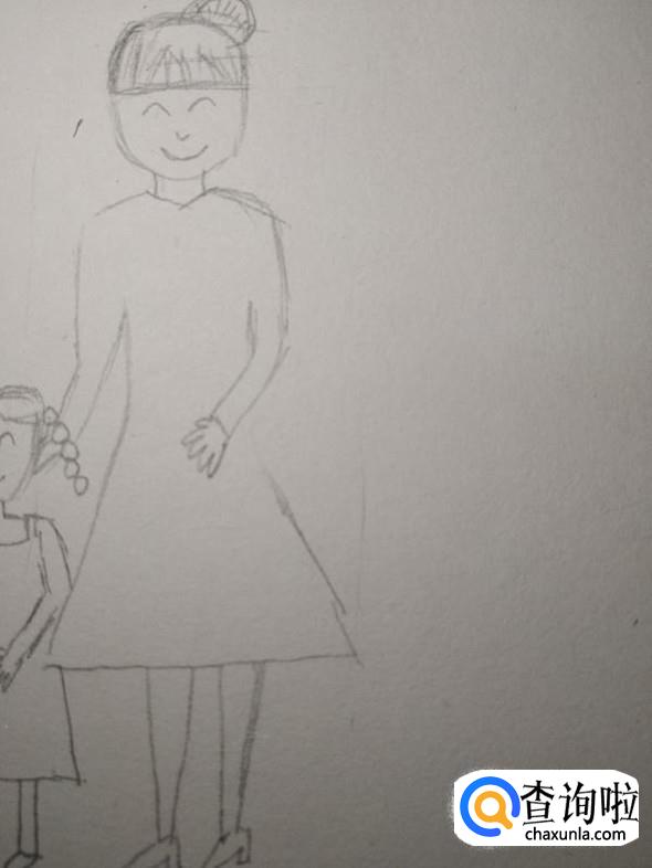 下面画妈妈。也画一个笑眼弯弯的妈妈。