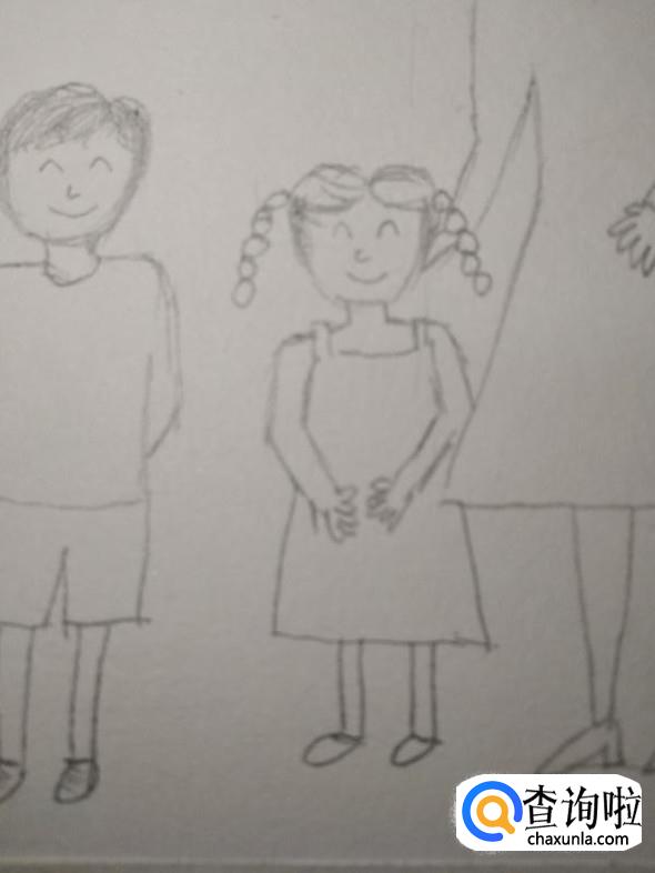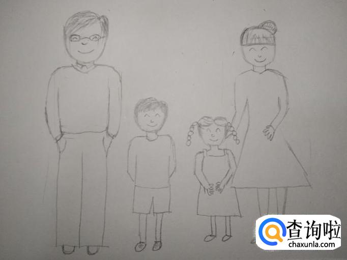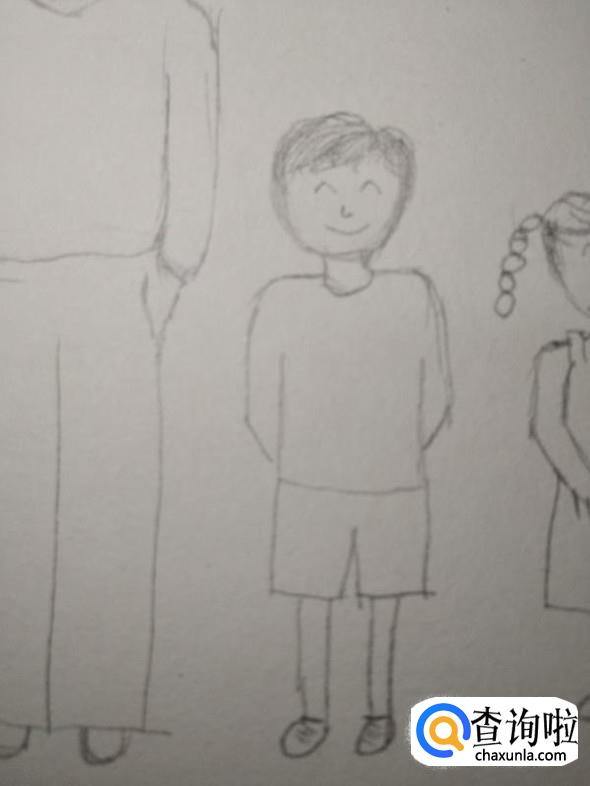下面画小哥哥。小哥哥比爸爸妈妈要矮,五官也要小。