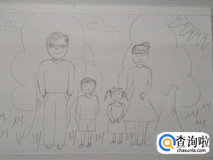 可以在画中添加背景,比如大树或者房屋或者沙发。举例,画大树小草和太阳云彩。