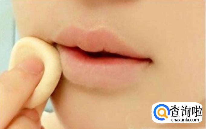 之后是要进行唇部打底。可以使用唇部打底或者粉底都可以,这事为了盖住唇部原本的颜色,使口红更加显色。