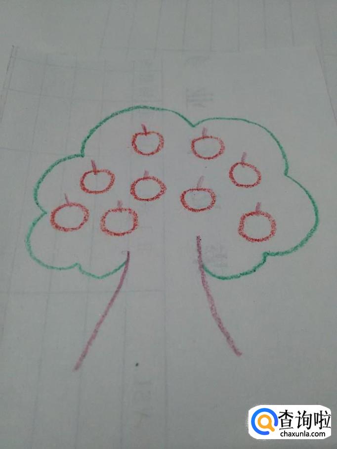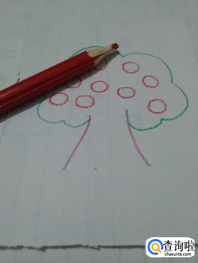 在树冠里面用红色彩笔画几个圆形,表示苹果。