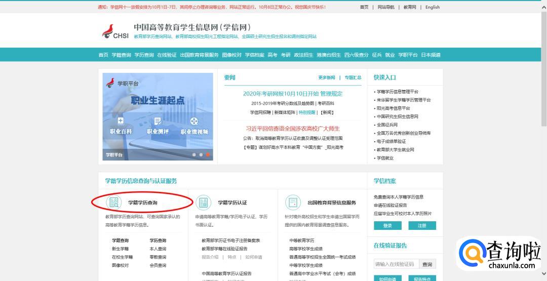 在学信网首页左下方找到“学籍学历查询”。
